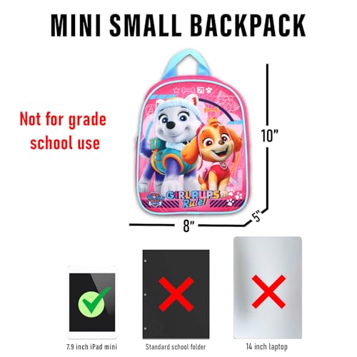 Paw Patrol Mini Backpack for Girls - Bundle with 10" Small Backpack Featuring Skye and Everest Plus Stickers, Water Bottle, More | Paw Patrol Travel Bag Set for Kids 7
