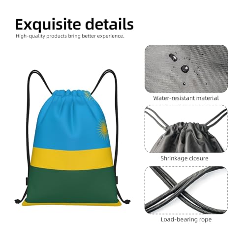 Medium Lightweight Drawstring Bags – Gym Flag of Rwanda Print Backpack Bag for Sports, Yoga, Travel & Hiking – Adjustable 7
