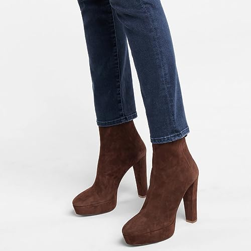 • Perfect Height- With a heel height of approximately 10-12 cm/3.93-4.72"(slightly varied by size), these chunky high heeled back zipper ankle booties elongate your legs and add a touch of elegance to any outfit.