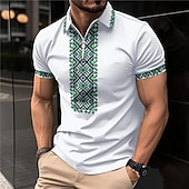 popular ! Men's Tribal Zip Polo Shirts Golf Shirt Short Sleeve Polo Shirts Collared Shirts Vintage Casual Vacation Wear Party Outfits 3D Print Quarter Zip Polo Yellow Light Green Blue