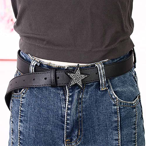 Vctitil 2PCS Adjustable Versatile Women Waist Belts With Star Shaped Buckle PU Leather Alloy Rhinestone Wide Waist Belt 2