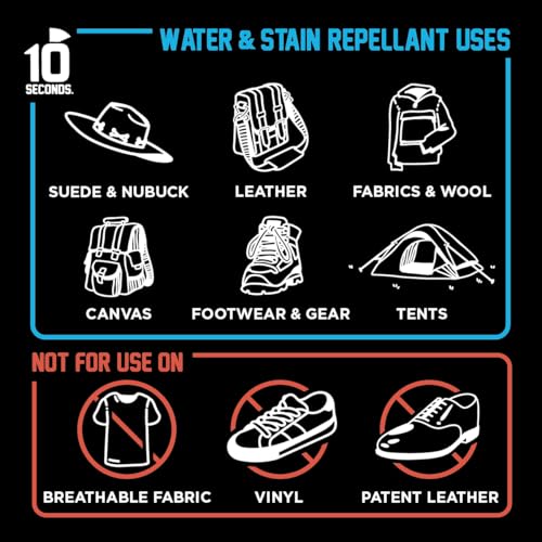 10 Seconds – Water Repellent Spray Instantly Shields Footwear, Motorcycle & Camping Gear | Durable, Lightweight, Breathable, Stain & Grime Resistant Protection 7