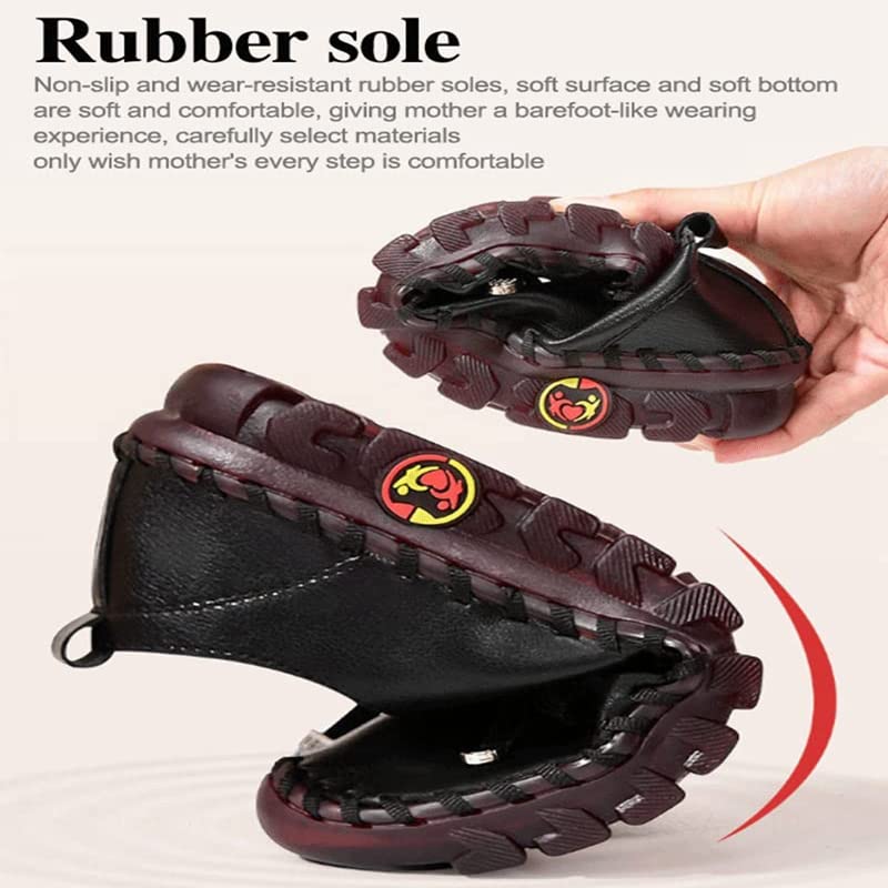 More information about Braised Pork 2023 New Women's Leather Soft Bottom Flat Shoes Handmade Beef Tendon Leisure Set of Feet Breathable Round Head Non-Slip Fall Shoes (Black,41/US 9-9.5)