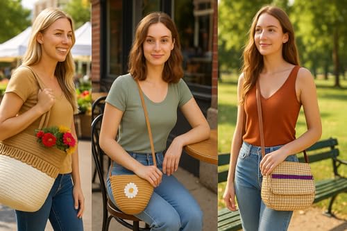 • 3-in-1 Combo Set – Includes a large tote bag, mini pouch bag, and crossbody sling with beautiful floral & woven designs – ideal for shopping, travel, office, or beach days