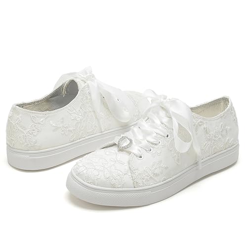 • [Style]:Lace wedding tennis shoes, lace-up closure for a secure fit, high quality made, elegant appearance, wedding sneakers are perfect for brides who want to add personality and fun to their wedding attire.These wedding shoes are gorgeous, stylish, and super comfortable, will match your many style dresses