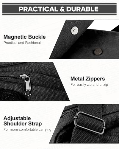 • Quality Fabrics]: This men's cross body bag is made of high-density washed canvas fabric, feel comfortable, sturdy enough, simple design and retro. All zippers are smooth and durable and the reinforced stitching ensures longevity. Adjustable shoulder strap,easy to carry. It's a very durable shoulder bag,which suitable for any occasion