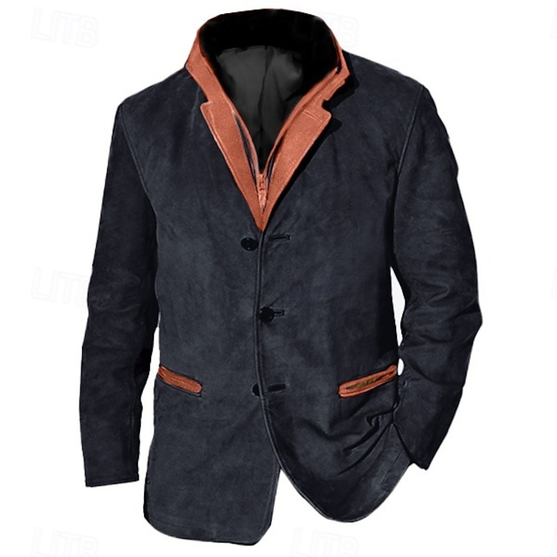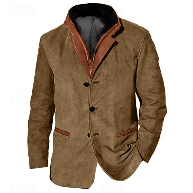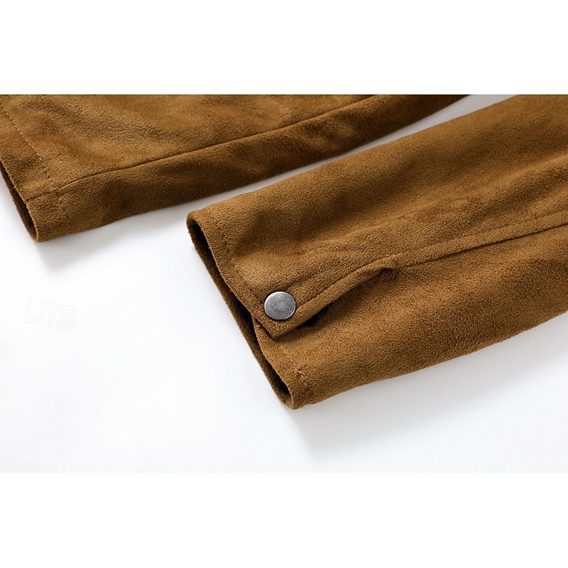 More information about Men's Lightweight Jacket Jacket Casual Jacket Faux Suede Jacket Outdoor Daily Wear Pocket Fall Plain Vintage Casual Lapel Regular Black Navy Blue Brown Khaki Coffee Jacket