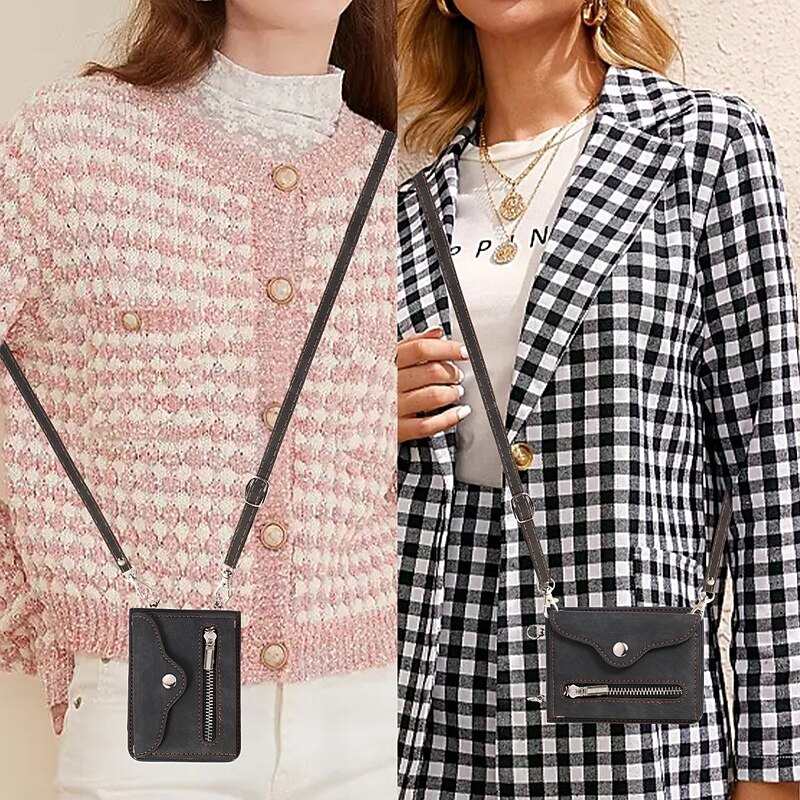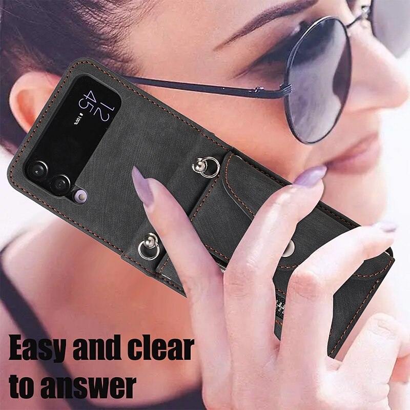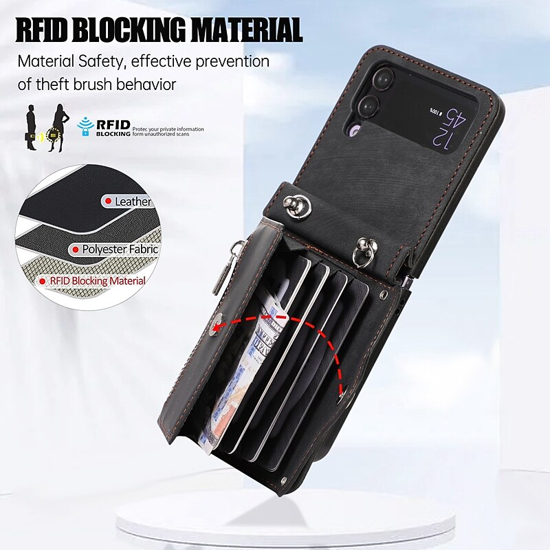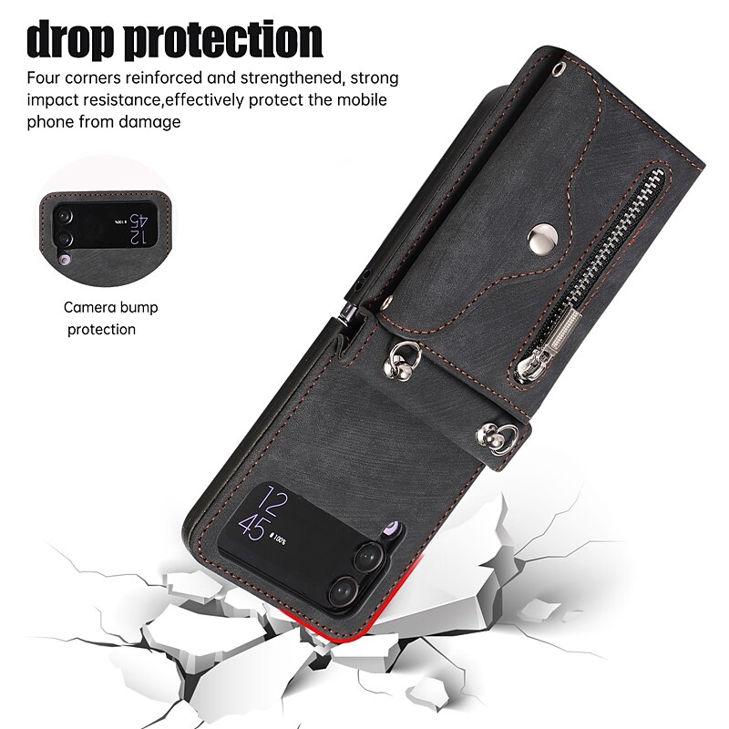 More information about Phone Case For Samsung Galaxy Z Flip 7 Z Flip 6 Z Flip 5 Z Flip 4 Z Flip 3 Handbag Purse Wallet Case Flip Zipper with Removable Cross Body Strap Solid Colored PC PU Leather