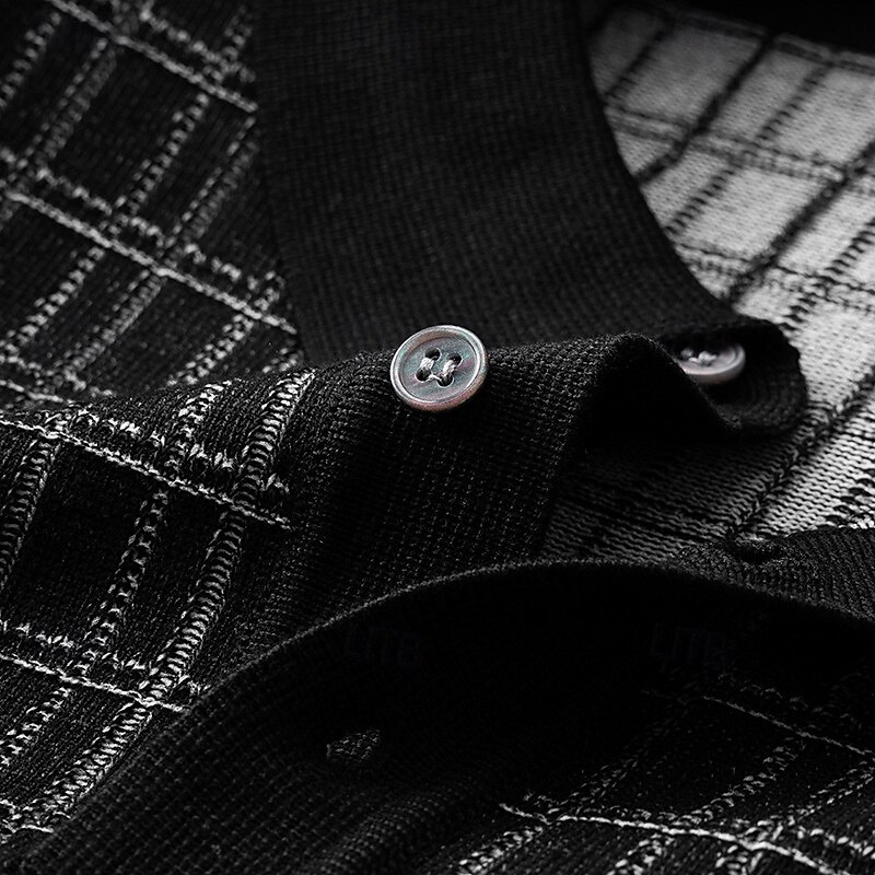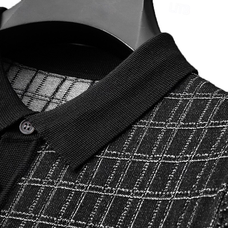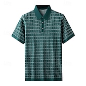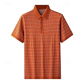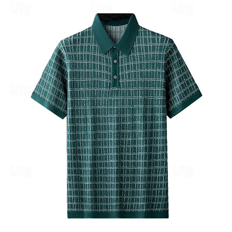 More information about Men's Polo Knit Polo Sweater Business Casual Lapel Short Sleeve Formal Office Plaid Checkered Patchwork Summer Black Light Green Dark Green Orange Polo