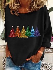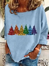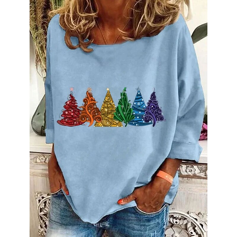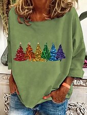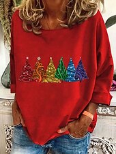 More information about Christmas Women's T Shirt Graphic Christmas Tree Bohemia Vintage Fashion Long Sleeve Crew Neck Regular Tops Daily Weekend Print Black Pink Red Blue Green Spring Fall