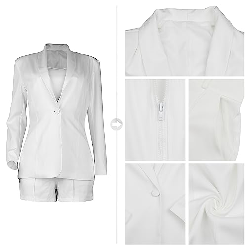 NRTHYE Women Sexy Bussiness Outfits 3 Piece Open Front Button Blazers + Crop Tops + Belted Shorts Set Jumpsuits 3