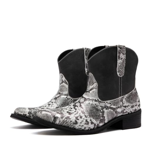 Men's fashionable pointed-toe shoes, casual boots and convenient ankle boots, irregular snake-patterned leather in the style of Western cowboys 6