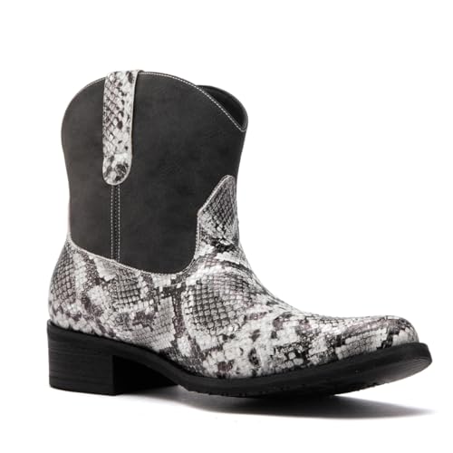 Men's fashionable pointed-toe shoes, casual boots and convenient ankle boots, irregular snake-patterned leather in the style of Western cowboys 1