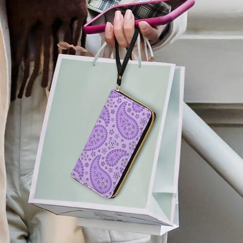 Purple Paisley Portable Long Wallet for Women Men Zipped Travel Purse Credit Card Holder Coin Pouch 1