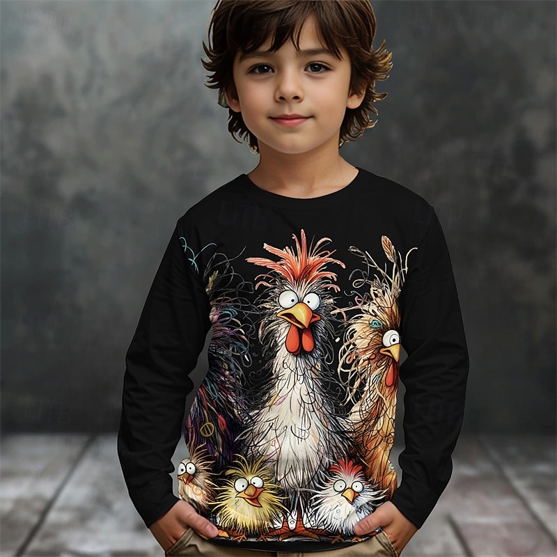 HOT ! Boys' 3D Graphic Animal Chick T shirt Tee Long Sleeve Spring Fall Fashion Basic Kids 4-12 Years Crew Neck Outdoor Casual Daily Regular Fit