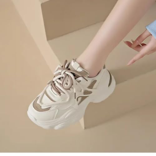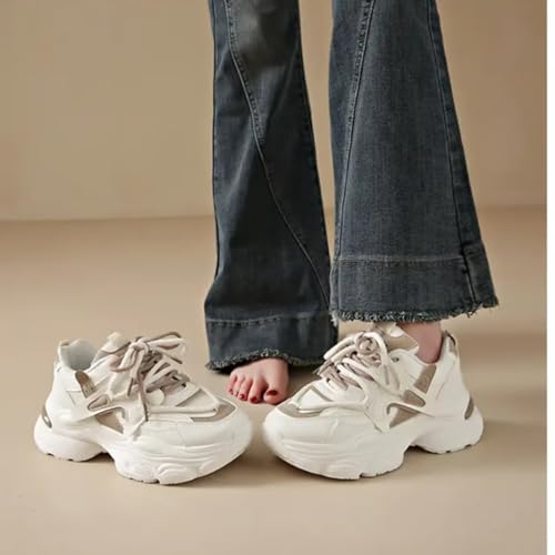 Womens Fashion Leather Lace Up Chunky Platform Sneakers Casual Breathable Shock Absorbing Heighten Walking Workout Driving Shoes 6