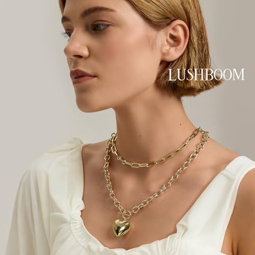 14K Gold Plated Paperclip Choker Necklace with Heart Charm - Trendy Layered Dainty Chain Jewelry for Women Gift for Her 5
