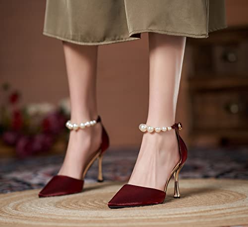 • The perfect balance of classic and on-trend, Women D’orsay Sexy High Heels Evening Bridal Wedding Formal Pump Shoes With Pearls Ankle Strap