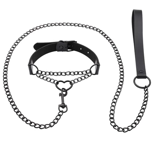 • Leather Collar and Leash Set | Choker Necklace for Women | Heart Necklaces for Women | Collar for Women | Goth Accessories | Gothic Jewelry | Rave Accessories | Choker Necklace | Black Choker | Rave Accessories for Women | Leather Chokers for Women