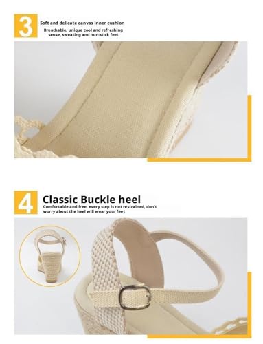 • 【Upper Material】This sandal is made of breathable cotton fabric, which makes you feel comfortable all day long. The wedge heel and thick platform can easily increase your height and create an elegant and slender shape.