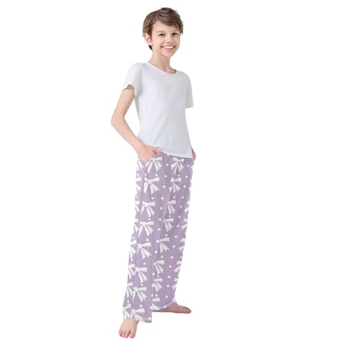 Pajama Bottoms, Bows Ribbons Pajamas Pant Sleep Long Pants Purple Lounge Wear Elastic Waist Sleepwear Pjs 4