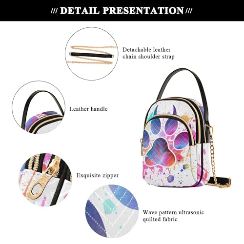 Watercolor Dog Paw Print Shoulder Handbag Women Colorful Phone Bags with Chain Strap Quilted Zipper Designer Bowler Tote 5