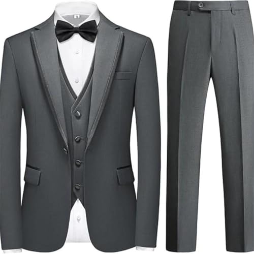 Men's 3-Piece Slim Fit Wedding Suit | Tuxedo Blazer Vest Pants Set | Business Prom Party 3