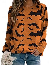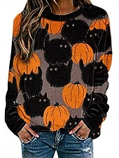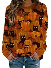 More information about Halloween Women's Sweatshirts Pumpkin Print Graphic Cat Casual Long Sleeve Crew Neck Regular Tops Street Dailywear Casual Print Black Yellow Orange Spring Fall Winter