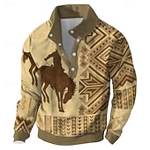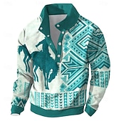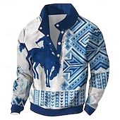 More information about Men's Patchwork Sweatshirt Ethnic Vintage Retro High Neck Outdoor Home Sports Outdoor Blue Brown Buttons Fall Winter Designer