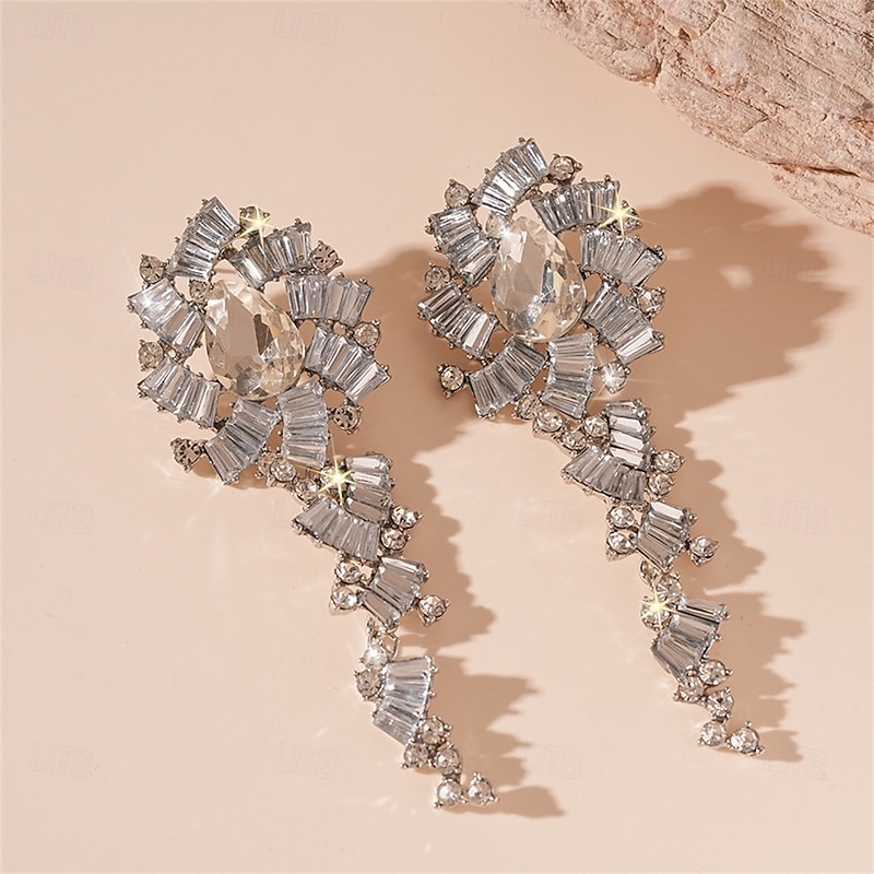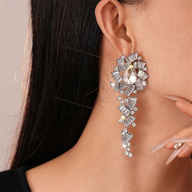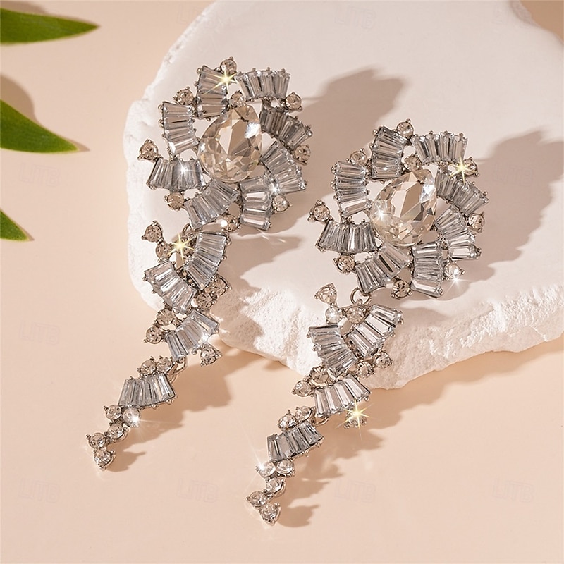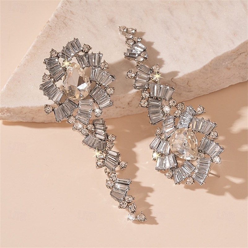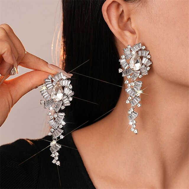 More information about Silver Cubic Zirconia Hoop Earrings Vintage Style Geometrical Drop Vintage Fashion Earrings Jewelry Silver For Wedding Party Holiday 1 Pair