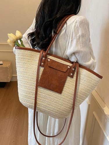 HOT ! Rungion Straw Beach Bags for Women Large Rattan Woven Tote Shoulder Purse Summer Crossbody Top Handle Handbags for Vacation