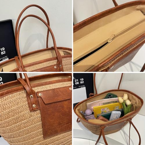 • Fashion Design: Made of high-quality woven straw with stylish PU leather trims, this bag combines natural texture with modern elegance for a perfect summer accessory