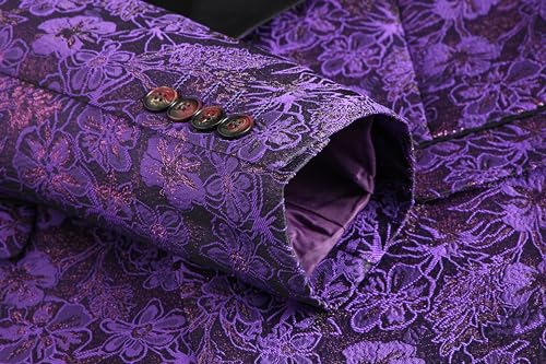 MOGU Mens 3 Piece Floral Print Dress Suit Slim Fit Jacquard Tuxedo Wedding Party Dinner 3