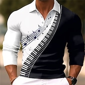 More information about Music Festival Men's Music Polo Shirts Golf Shirt Long Sleeve Polo Shirts Collared Shirts Casual Vacation Wear Festival Wear Party Outfits 3D Print Buttons Fall & Winter Black White Wine
