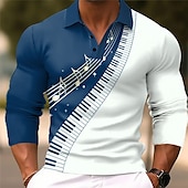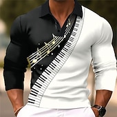 Music Festival Men's Music Polo Shirts Golf Shirt Long Sleeve Polo Shirts Collared Shirts Casual Vacation Wear Festival Wear Party Outfits 3D Print Buttons Fall & Winter Black White Wine 3