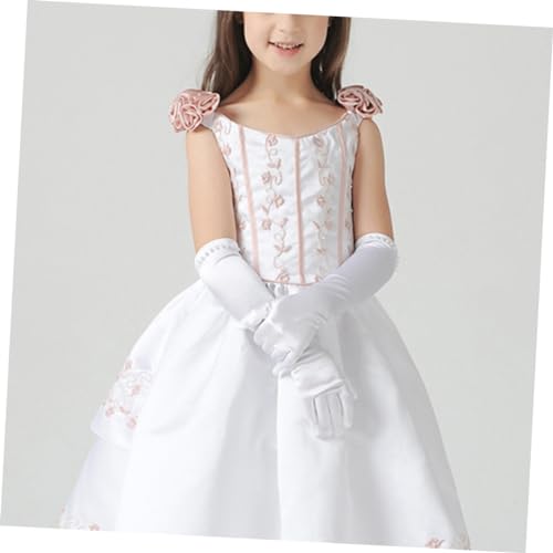 FRCOLOR 1pair Wedding Flower Girl Gloves Satin Decor Elegant Full Finger Design for Special Occasions White for Weddings Parties and Pageants 6
