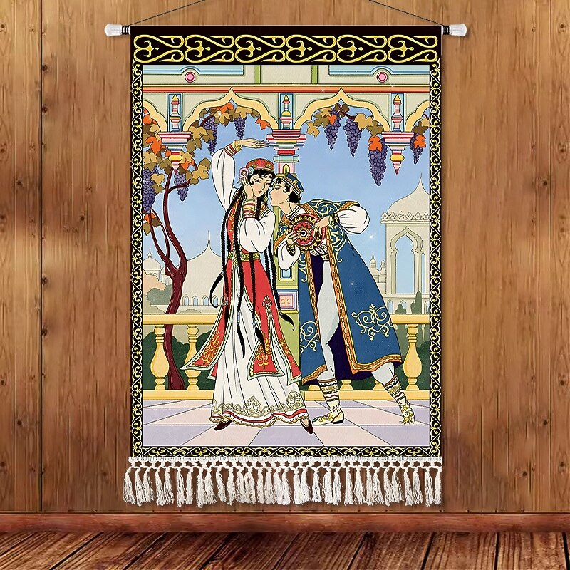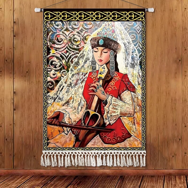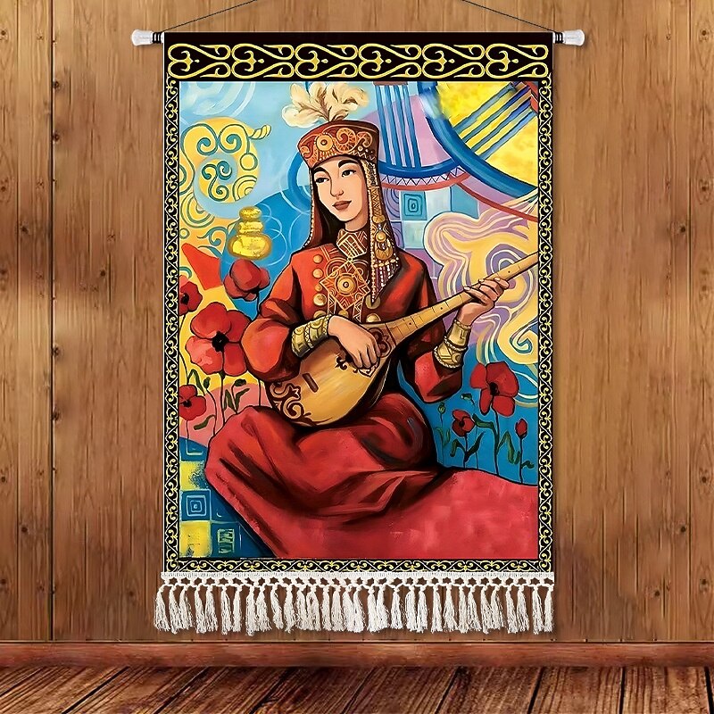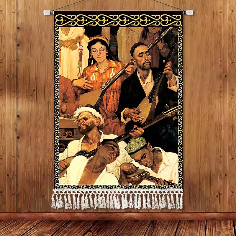 Beauty Uyghur Ethnic Style Wall Tapestry, Artistic Background Decoration, Boho Hanging Art for Bedroom, Living Room, or Cafe 1