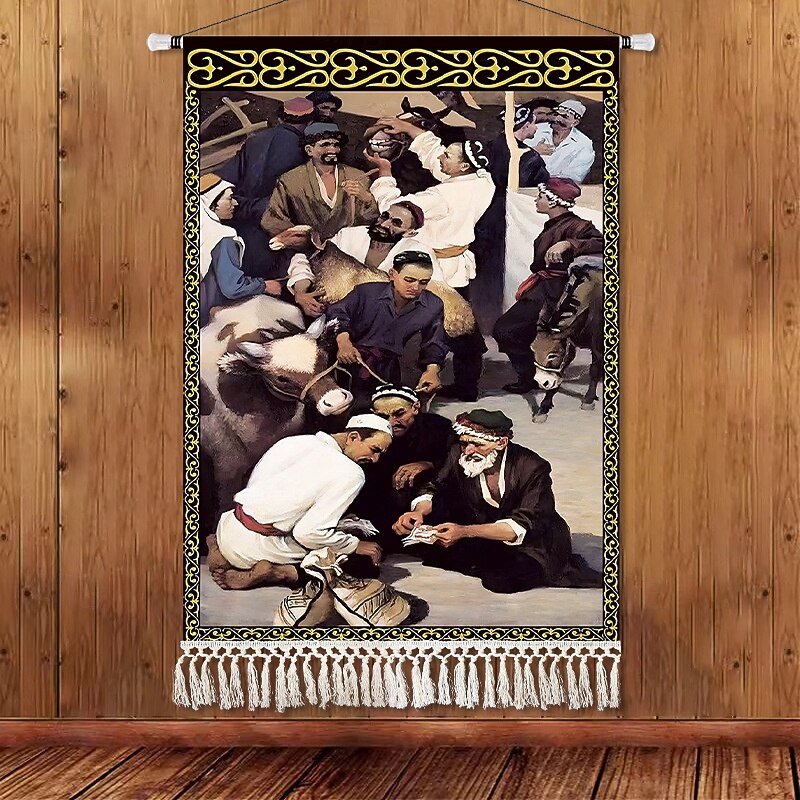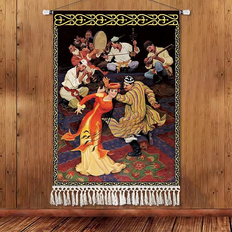 Beauty Uyghur Ethnic Style Wall Tapestry, Artistic Background Decoration, Boho Hanging Art for Bedroom, Living Room, or Cafe 41