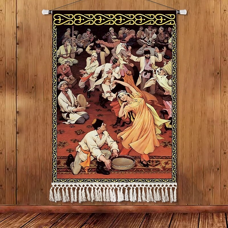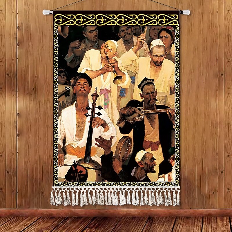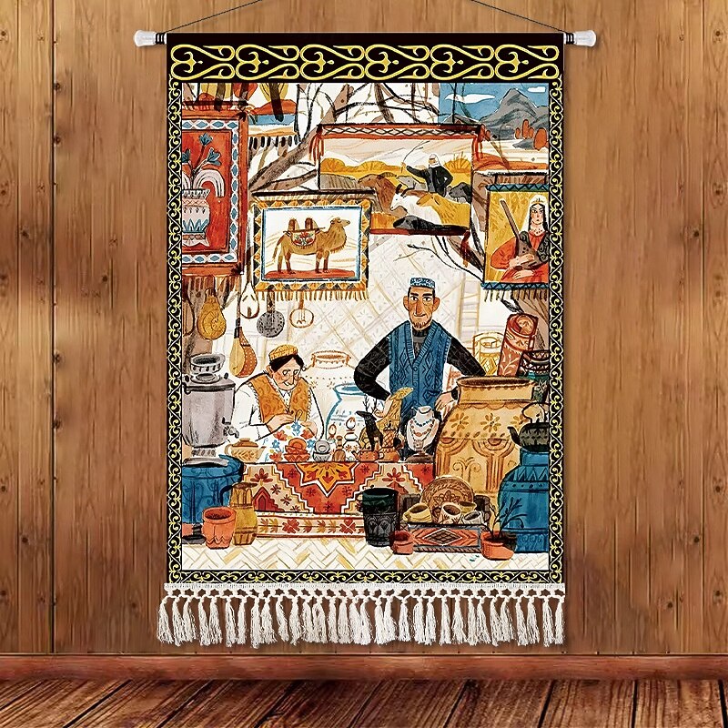 Beauty Uyghur Ethnic Style Wall Tapestry, Artistic Background Decoration, Boho Hanging Art for Bedroom, Living Room, or Cafe 29