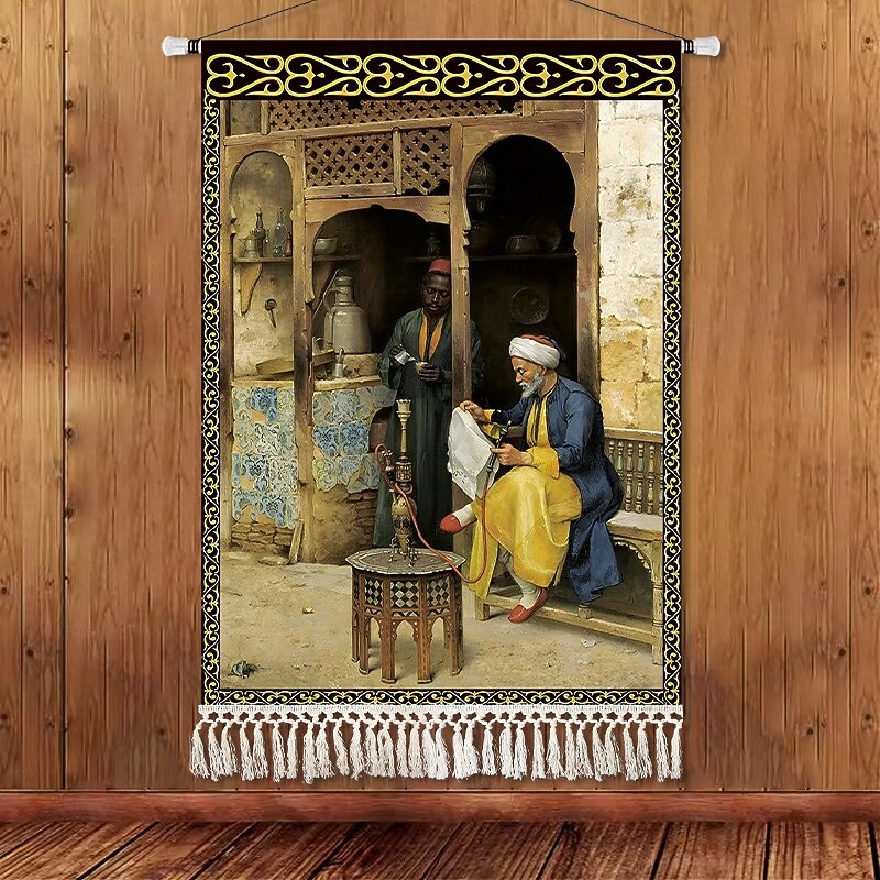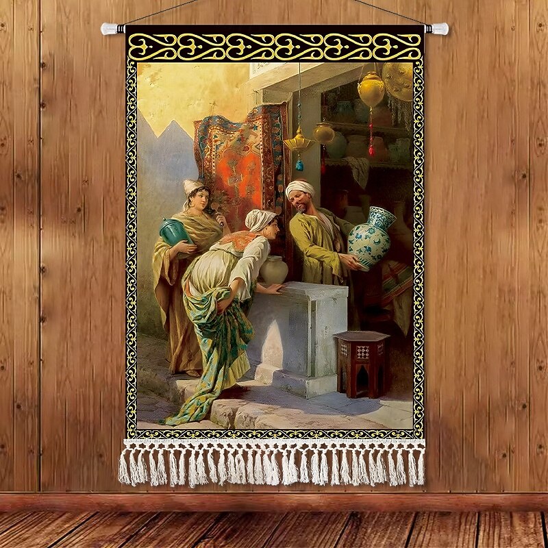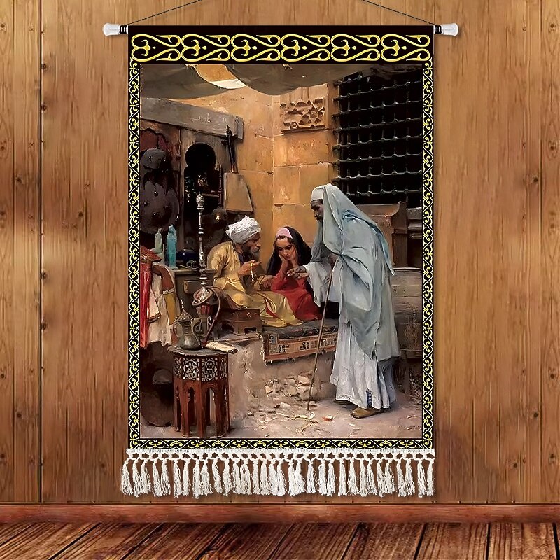 Beauty Uyghur Ethnic Style Wall Tapestry, Artistic Background Decoration, Boho Hanging Art for Bedroom, Living Room, or Cafe 9