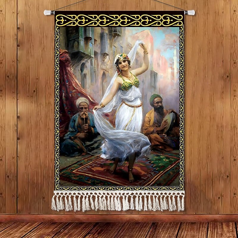 Beauty Uyghur Ethnic Style Wall Tapestry, Artistic Background Decoration, Boho Hanging Art for Bedroom, Living Room, or Cafe 4