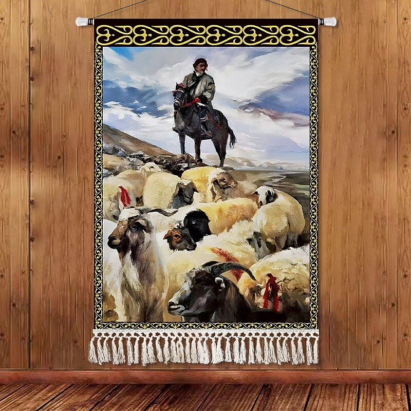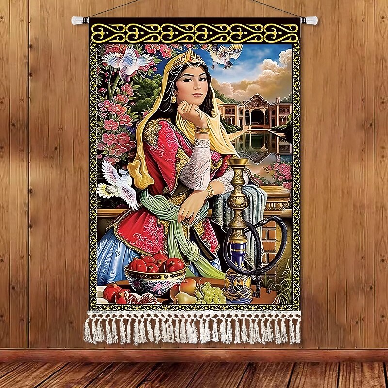 Beauty Uyghur Ethnic Style Wall Tapestry, Artistic Background Decoration, Boho Hanging Art for Bedroom, Living Room, or Cafe 24