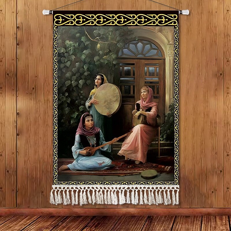 Beauty Uyghur Ethnic Style Wall Tapestry, Artistic Background Decoration, Boho Hanging Art for Bedroom, Living Room, or Cafe 14