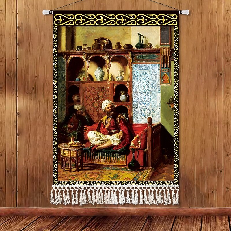 Beauty Uyghur Ethnic Style Wall Tapestry, Artistic Background Decoration, Boho Hanging Art for Bedroom, Living Room, or Cafe 25