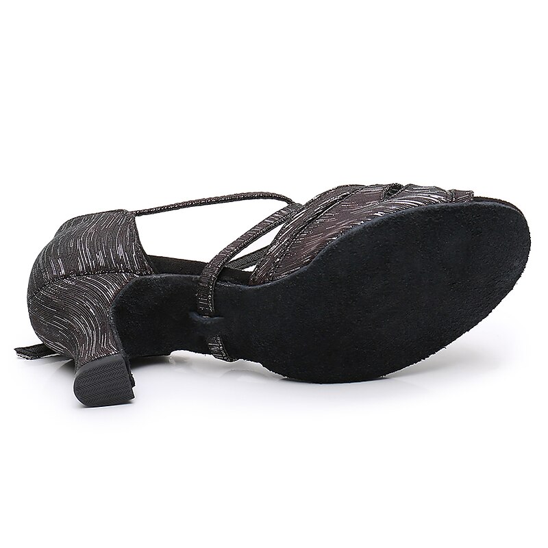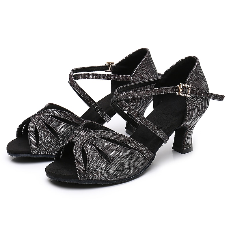 : Designed with a classic open-toe and cross strap style, these dance shoes offer both elegance and practicality. The Cuban heel provides stability and support, making them suitable for long hours of dancing without sacrificing style.
