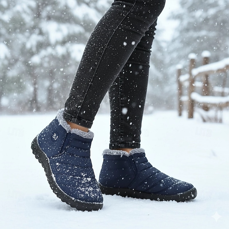 Highlights [Fabric] Crafted from durable and elastic fabric, these women's winter boots are designed to withstand cold and wet conditions. The material is both waterproof and sturdy, making them ideal for snowy weather. [Style] The boots feature a flat heel and high-top style, providing additional ankle support and comfort. The round toe shape and casual, plush design ensure a comfortable fit and timeless appearance. [Design Highlights] These ankle boots boast a plush, fleece-lined interior that ensures warmth and coziness in cold weather. The slip-on loafer design with a convenient pull tab at the back allows for easy wearing, while the sleek padded exterior adds a modern touch. [Occasions] Perfect for daily wear during winter, these boots are suited for both outdoor activities and casual outings. Their non-slip rubber sole provides stability on slippery surfaces, making them a reliable choice for snowy conditions. [Size Range] Available in a variety of sizes ranging from US5.5/EU35/UK3.5 to US11/EU43/UK9, ensuring a fit for a wide range of foot sizes. Additionally, the multiple color options, including Blue, Black, Red, Coffee, and Grey, offer versatile styling choices for any wardrobe.