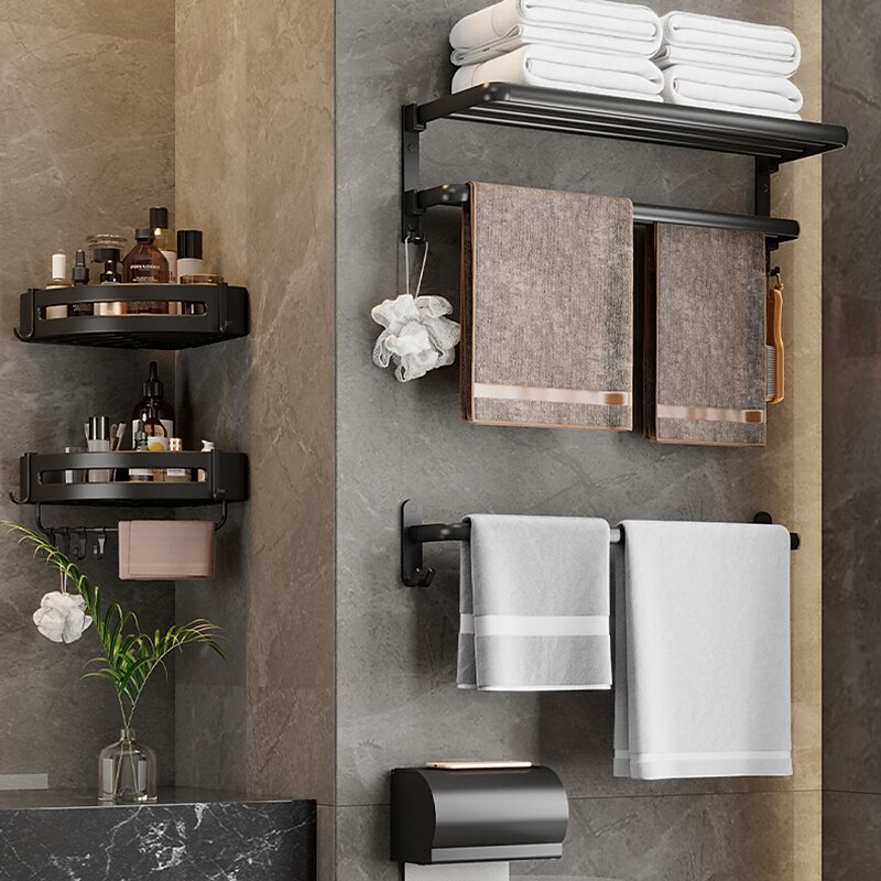 Black Bathroom Towel Rack Black Bathroom Storage Rack Toilet Bathroom Hardware Pendant Set Non Perforated Towel Rack 4