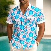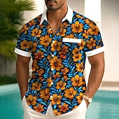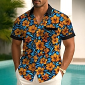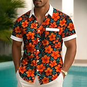 More information about Men's Floral Print Tropical Flowers Summer Hawaiian Shirt Button Up Shirt Aloha Shirt Short Sleeve Hawaiian Holiday Beach Wear Summer Spring Turndown 3D Print Collared Shirts Front One Pocket Black