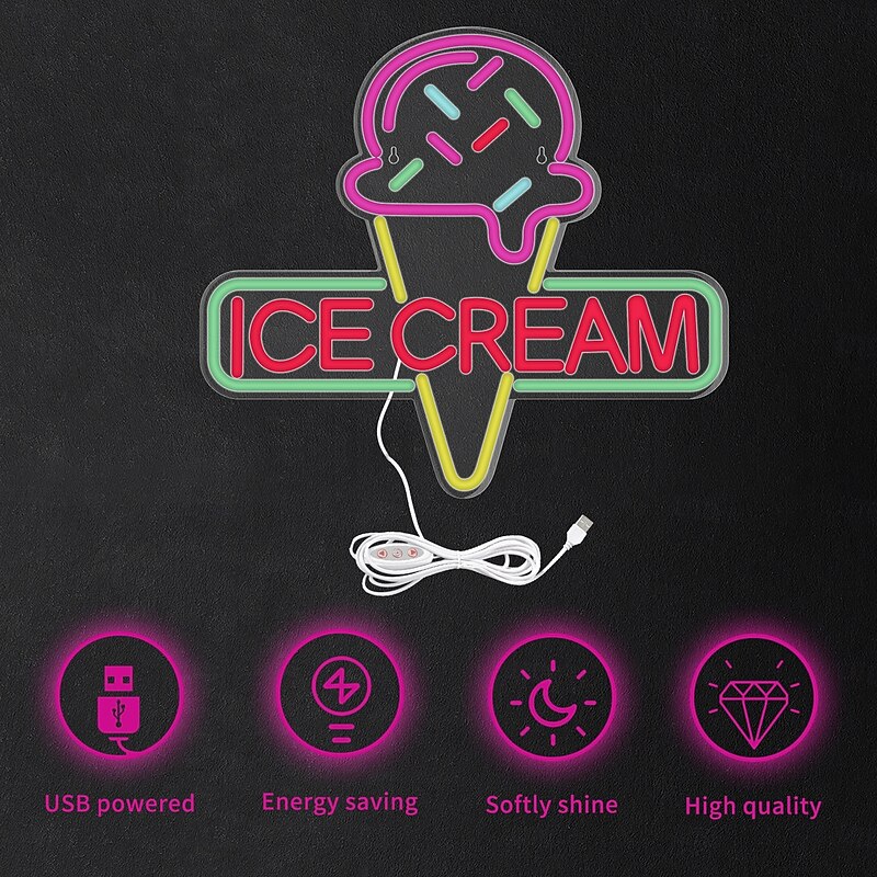 $66.99 - Ice Cream Neon Sign Light, Colorful LED Neon Light, USB-Powered with Brightness Control for Cafe, Shop, Bedroom, Restaurant Wall Decor 2025. Shop for cheap Neon LED Lights online? Buy at lightinthebox.com on sale today!
