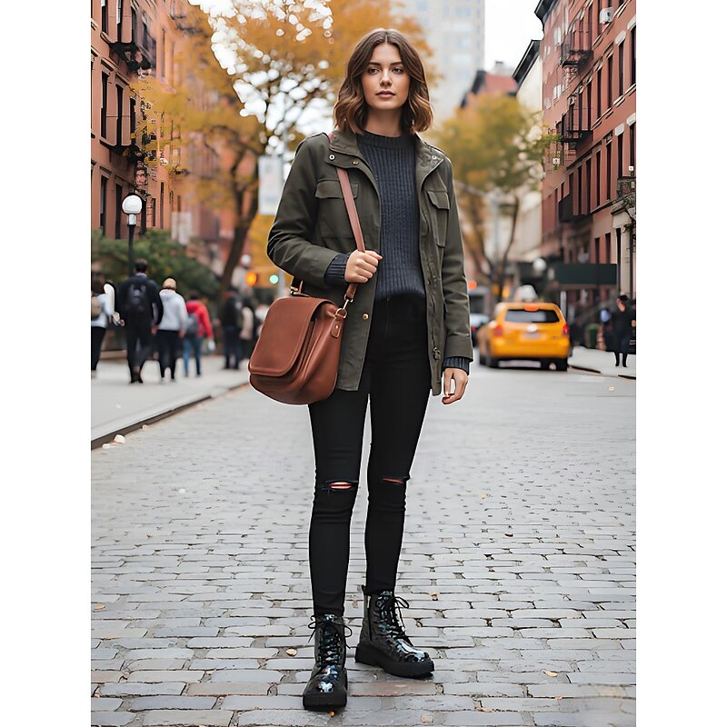 Women's Glitter Leopard Combat Boots Chunky Sole - Fashion Lace-Up Ankle Boots for Women Urban Streetwear and Casual Outfits 15